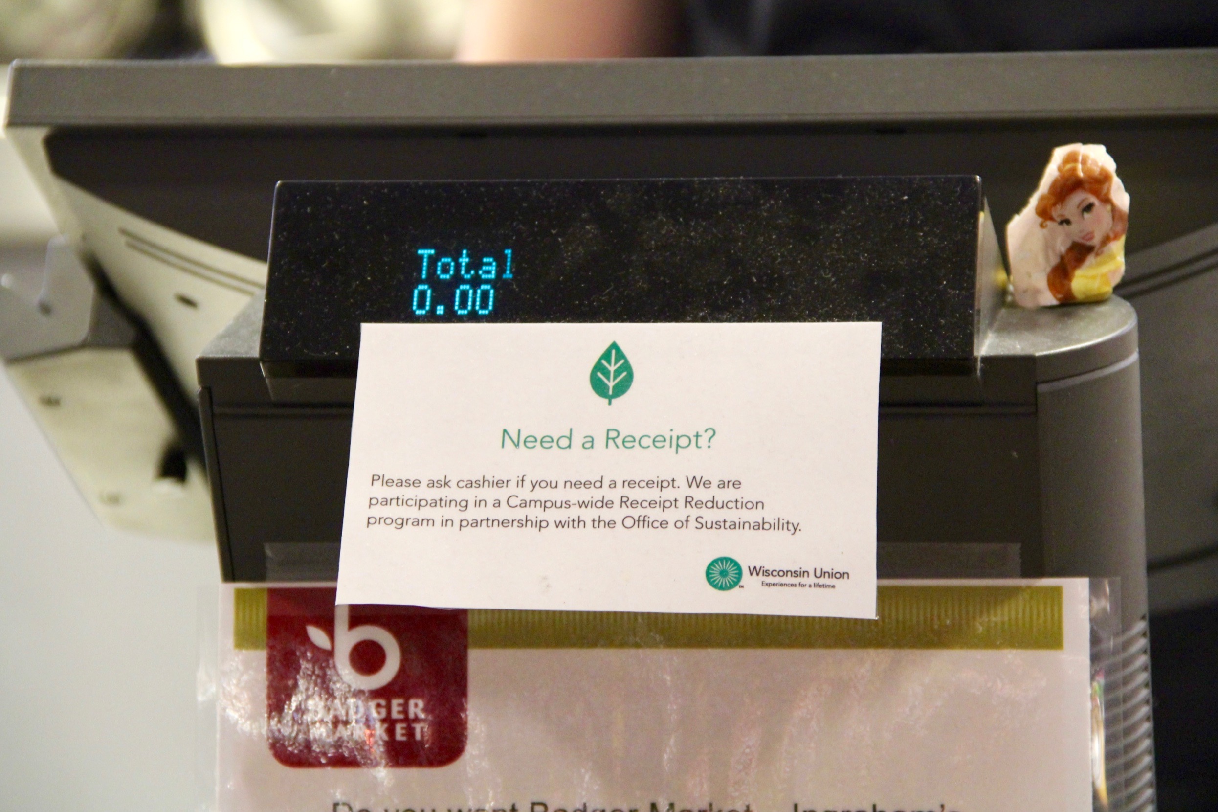 These changes have been widely publicized in campus news outlets, assisted by Office of Sustainability communications director Jill Sakai. The Wisconsin Union has also promoted the receipt reduction measures to customers with prominent signs on registers at participating locations. These signs increase public awareness of both the project and the campus and Union’s dedication to sustainability.