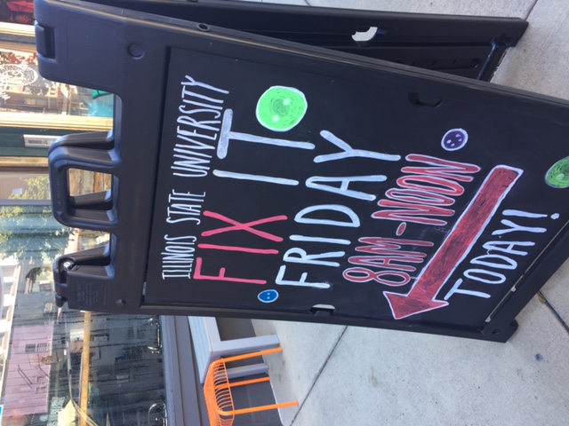 The response to the Fix It Friday program from the campus and the community has been overwhelming. As the faculty advisor, I have fielded phone calls and emails from local news sources, businesses and organizations throughout the state of Illinois, interested in our program and inviting us to set up shop at their storefront or event. We already have Fix It Fridays scheduled at locations throughout our campus and community for the following academic year!