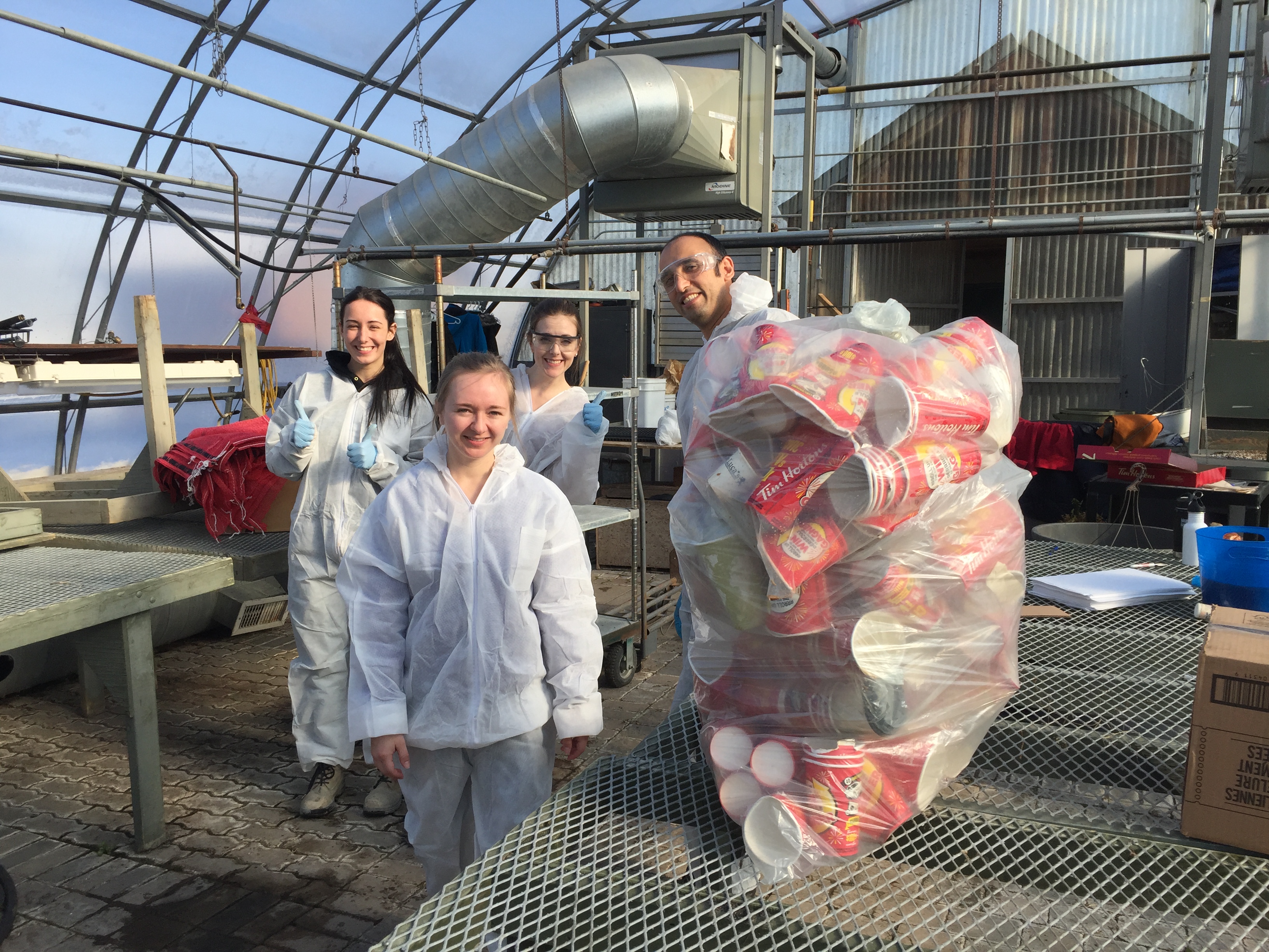 For both audits, Building Services and the Recycling Team helped the students collect 24-hours-worth of waste in the sample locations for both audits. The waste audits were conducted in a greenhouse on campus, in partnership with Grounds who made the space available and transported the waste to and from the location.