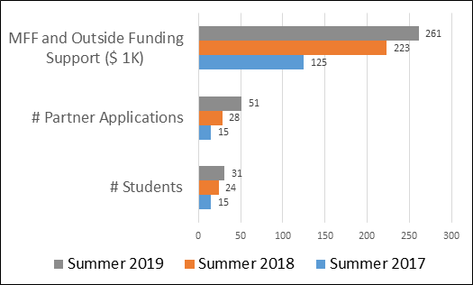 Finally, the ultimate test of value has been the global pandemic. Demand for this program has persisted through this difficult time, with 26 of the 34 selected partner organizations for this year continuing with the program, despite having to move to an online, telework model. We have found this to be a lesson in resilience for all participants and partners, and are proud to continue moving forward in era in which many student internships and hands on learning experiences have evaporated.