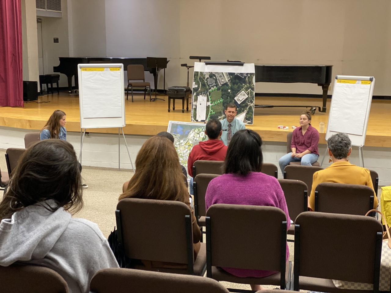 From the inception of the project through its development, we built a relationship with the Director of Landscape Architecture from UCF Landscaping and Natural Resources (LNR). Developing this relationship with LNR and a joint vision for how the community would lead the design of the greenspace was crucial to ensuring the insights from the town hall and the winning teams’ designs from the make-a-thon would be implemented in the final design for the CH greenspace. It was also extremely helpful to collaborate with the Director of Landscape Architecture to facilitate the town halls. With guidance from the Director of Landscape Architecture, we developed a plan for facilitating town hall discussions and recording insights participants shared on easel pads.