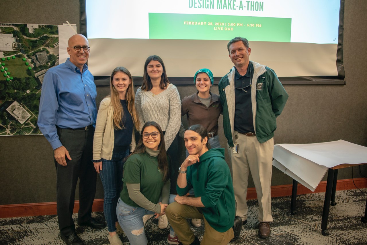 A team of students at the University of Central Florida (UCF) (Orlando, Florida) led a partnership between UCF Student Government, the UCF Office of Sustainability Initiatives, and UCF Landscaping and Natural Resources to host a series of events aimed at empowering the campus community to lead the design for a new greenspace on campus. The Greenspace Sustainability Design Town Halls and Make-A-Thon brought together perspectives from stakeholders across the campus and surrounding community to inform the design of the greenspace, and this series serves as an innovative model that can be used to develop a myriad of sustainable spaces and places by and for campus communities.