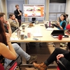 Clean Energy Extension students review and photograph architectural plans for an elementary school they are assessing, as well as present their findings.