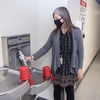 Photo of student cycling by green wall at NSCC Ivany Campus; Monica Foster (VP College Services and CFO), Martha MacGowan (Sustainability Technologist), and Amel Muskic (Facilities Support Assistant) completing a …